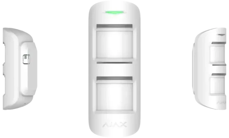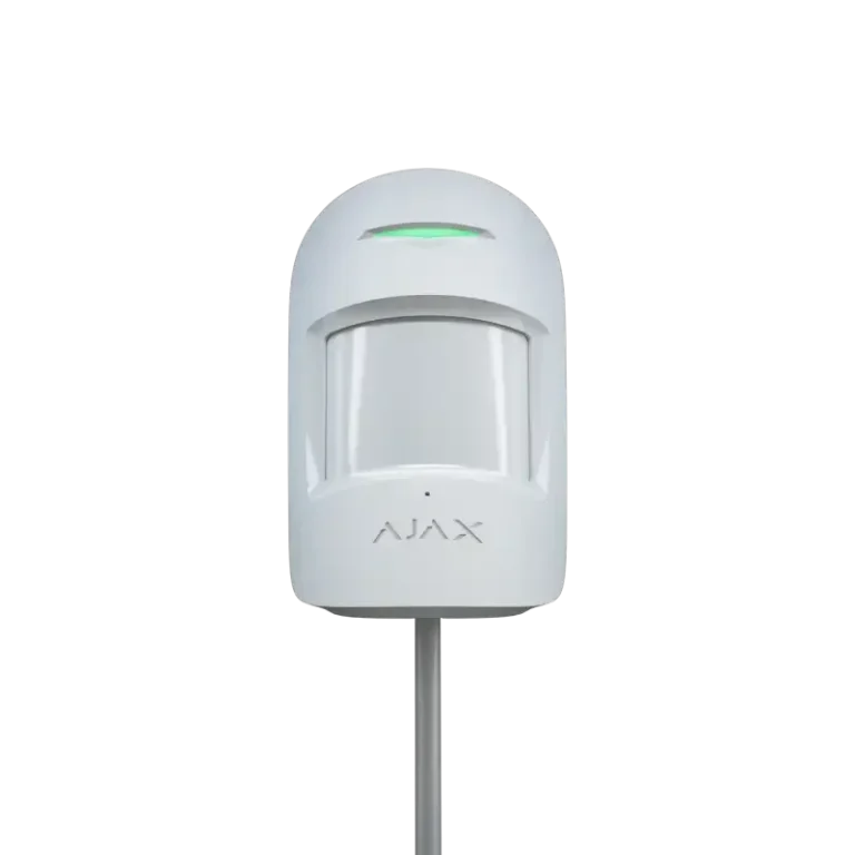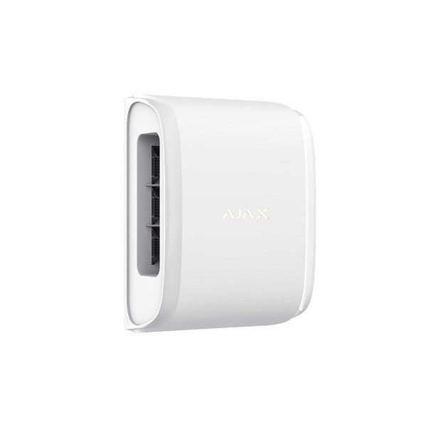 Der drahtlohse "Ajax CombiProtect white EU" kombiniert die Funktionen von zwei Meldern - eiem Bewegungsmelder und einem Glasbruchmelder. Der weiße Melder erkennt Bewegungen im Raum aus bis zu 12 Metern Entfernung und regestriert anhand eines Elektretmikrofons zerbrochenes Glas. Der kabellose Melder kann in einem Abstand von bis zu 9 Metern zum Fenster installiert werden.