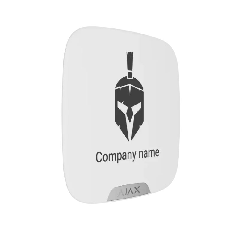 Die Frontplatte "Ajax Brandplate for StreetSiren DoubleDeck white EU" ist eine Markenblende in weiß für die Ajax Außensirenen und kann individuell mit Ihrem Logo bedruckt werden.