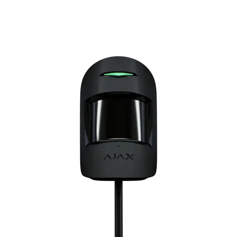 Der kabelgebundene "Ajax CombiProtect Fibra ASP black" kombiniert die Funktionen von zwei Meldern - einem Bewegungsmelder und einem Glasbruchmelder. Der schwarze Melder erkennt Bewegungen im Raum aus bis zu 12 Metern Entfernung und regestriert anhand eines Elektretmikrofons zerbrochenes Glas. Der kabelgebundene Melder kann in einem Abstand von bis zu 9 Metern zum Fenster installiert werden.