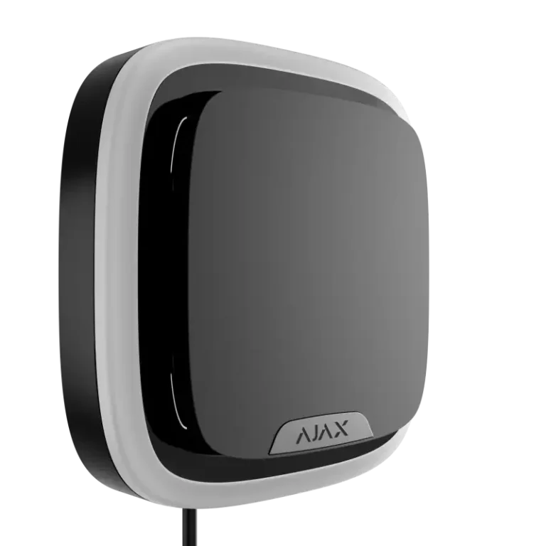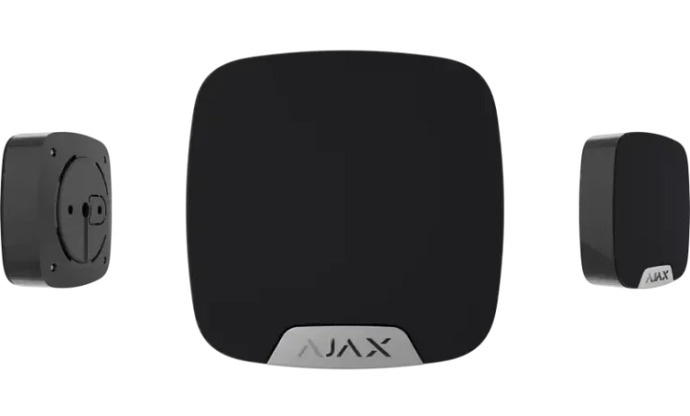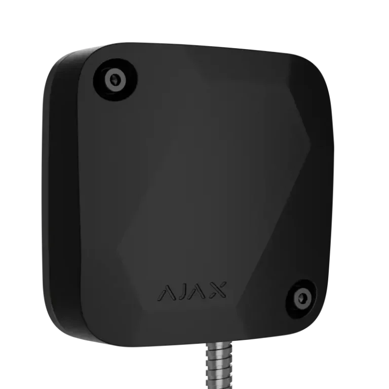 Der schwarze "Ajax LeaksProtect white EU" ist ein drahtloser Wassermelder, der sowohl im Falle eines Lecks als auch beim Austrocknen des Wassers eine Meldung abgibt. Verwendung in Innenräumen. Der Melder verbindet sich über das geschützte Jeweller-Funkprotokoll mit dem Ajax-Sicherheitssystem. Die Kommunikationsreichweite beträgt bis zu 1.300 Meter in Sichtlinie. Außerdem kann der Ajax LeaksProtect white mit Hilfe der Integrationsmodule Ajax uartBridge oder Ajax ocBridge Plus an Sicherheitssysteme von Drittanbietern angeschlossen werden.