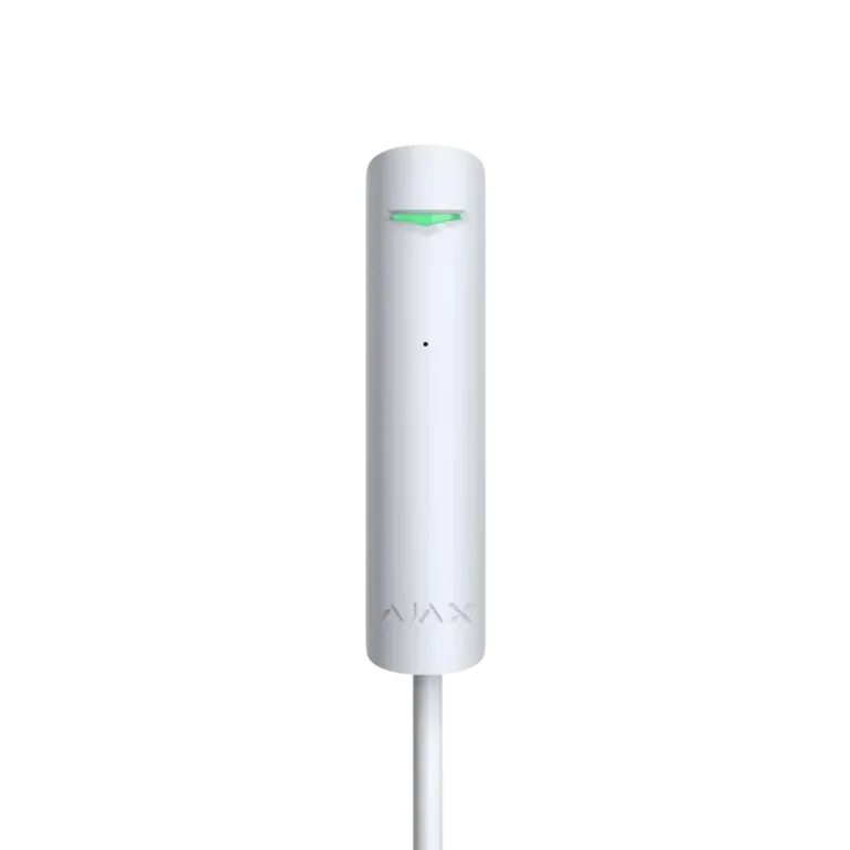 Der kabelgebundene "Ajax GlassProtect Fibra ASP white" Glasbruchmelder erkennt zerbrochenes Glas anhand eines Elektretmikrofons. Der weiße, kabelgebundene Melder kann in einem Abstand von bis zu 9 Metern zum Fenster installiert werden. Durch die Zwei-Faktor-Erkennung werden Fehlalarme durch zum Beispiel Gewitter, bellende Hunde oder vorbeifahrenden Verkehr verhindert.