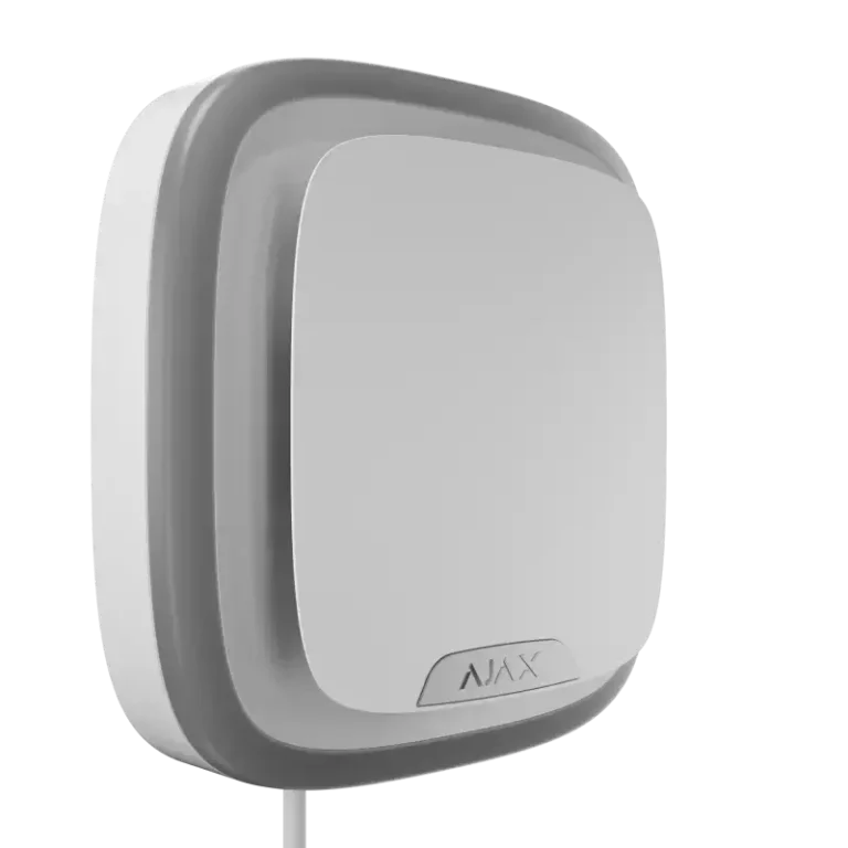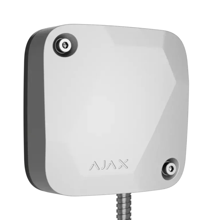 Der weiße "Ajax LeaksProtect white EU" ist ein drahtloser Wassermelder, der sowohl im Falle eines Lecks als auch beim Austrocknen des Wassers eine Meldung abgibt. Verwendung in Innenräumen. Der Melder verbindet sich über das geschützte Jeweller-Funkprotokoll mit dem Ajax-Sicherheitssystem. Die Kommunikationsreichweite beträgt bis zu 1.300 Meter in Sichtlinie. Außerdem kann der Ajax LeaksProtect white mit Hilfe der Integrationsmodule Ajax uartBridge oder Ajax ocBridge Plus an Sicherheitssysteme von Drittanbietern angeschlossen werden.