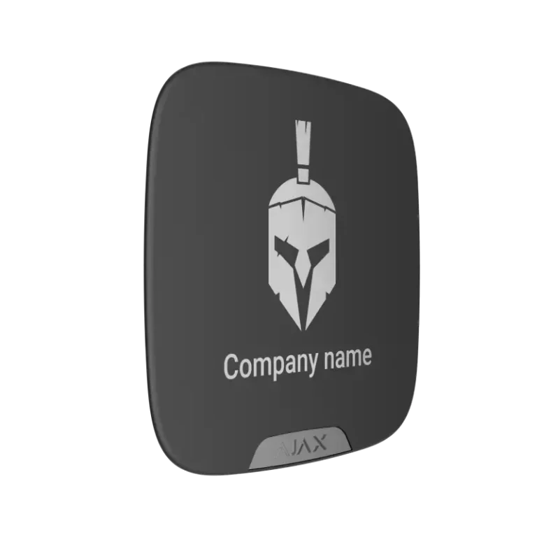 Die Frontplatte "Ajax Brandplate for StreetSiren DoubleDeck black EU" ist eine Markenblende in weiß für die Ajax Außensirenen und kann individuell mit Ihrem Logo bedruckt werden.