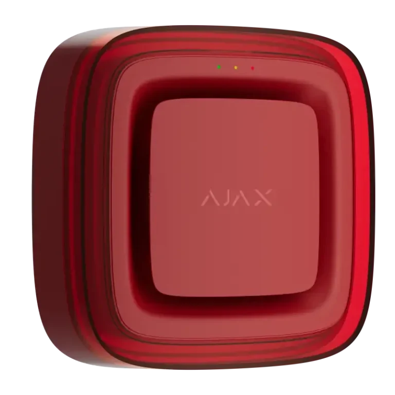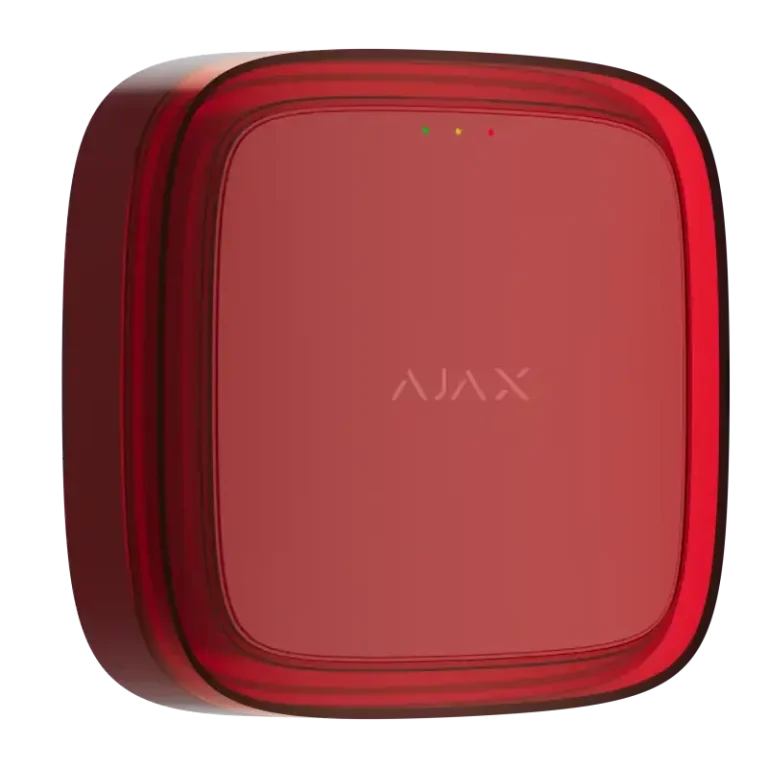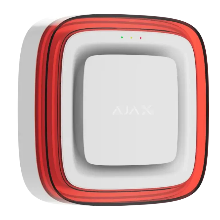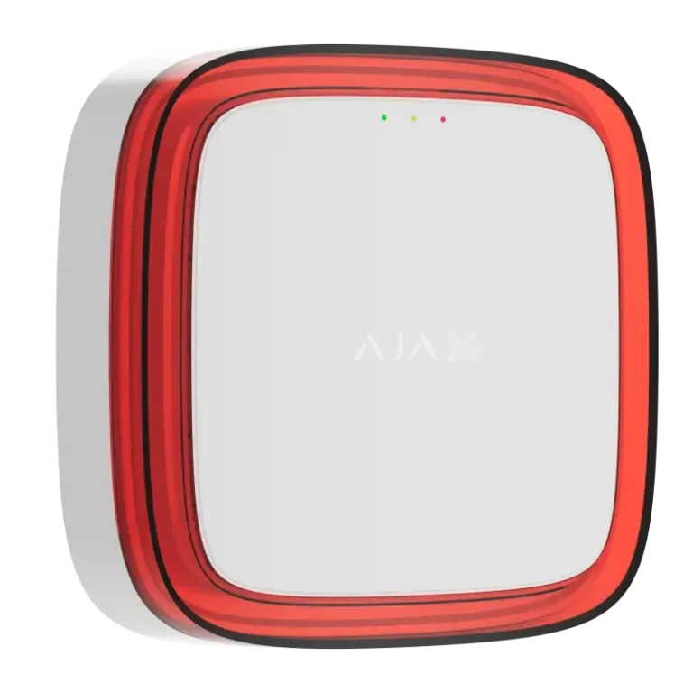 Der Ajax akustische und optische Funk-Signalgeber für den Innenbereich hat 32 einstellbare Sirenentöne inkl. den DIN 33404-3 Alarmton. Zusätzlich hat der Signalgeber ein rotes leistungsstarkes LED-Blitzlicht.