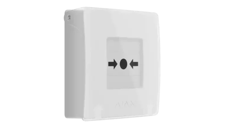Der weiße Ajax Druckknopfmelder dient zur manuellen Abschaltung technischer Anlagen. Der Druckknopfmelder hat ein Funkmodul integriert. Beim betätigen des Druckknopfmelders werden die damit verbundenen technischen Anlagen abgeschaltet.