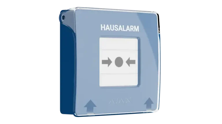 Der blaue Ajax Druckknopfmelder (DKM) dient zur manuellen Auslösung eines Feueralarmes. Der Druckknopfmelder hat ein Funkmodul integriert. Beim betätigen des Druckknopfmelders wird ein lokaler Hausalarm ausgelöst. Durch das Betätigen des Druckknopfmelder werden alle verbauten Sirene ausgelöst und zusätzlich erfolgt eine flächendeckende Alarmierung durch die im Objekt verbauten Ajax Rauchwarnmelder. Über die Ajax APP werden die Nutzer im Detail informiert, welches Gerät wann und wo ausgelöst wurde. Der manuelle ausgelöste Hausalarm kann auch an eine NSL Leitstelle übertragen werden.